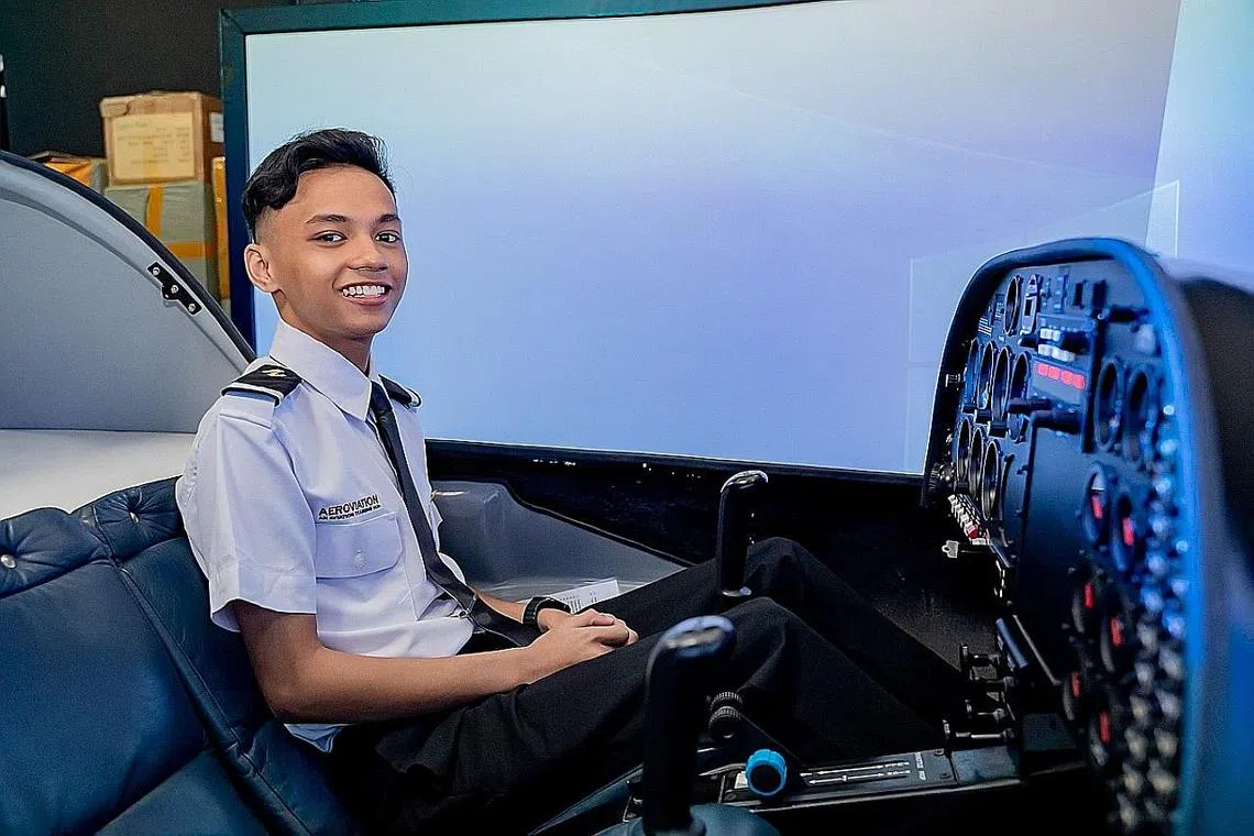"Dari situlah saya berminat untuk terbang," ujar Encik Hanafi, yang meraih Nitec dalam bidang teknologi aeroangkasa daripada ITE College Central tahun lalu.