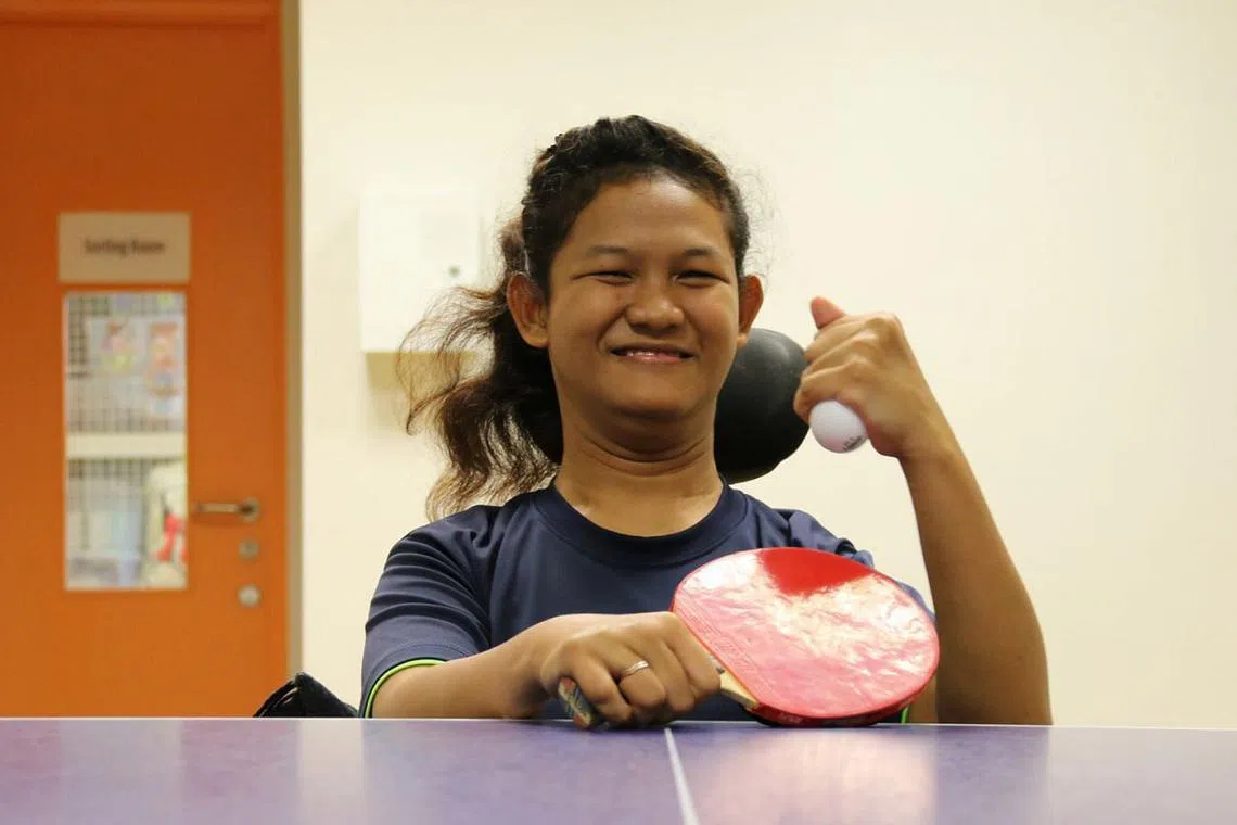 PERCAYA DIRI: Walaupun mengalami palsi serebral, Cik Juni Syafiqa membuktikan kemampuan dalam sukan boccia di peringkat nasional dan antarabangsa. Beliau kini mempelajari sukan baru, tenis meja. - Foto NUR HUMAIRA SAJAT -