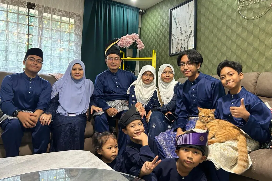 Setiap tahun, Encik Salman Kamiso sekeluarga menyambut hari pertama Syawal dengan memakai baju kurung baru sedondon yang dibeli khas untuk Hari Raya.