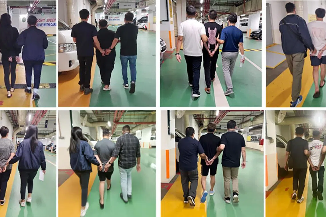 Mereka diberkas dalam satu operasi penguatkuasaan anti-penipuan di serata Singapura.