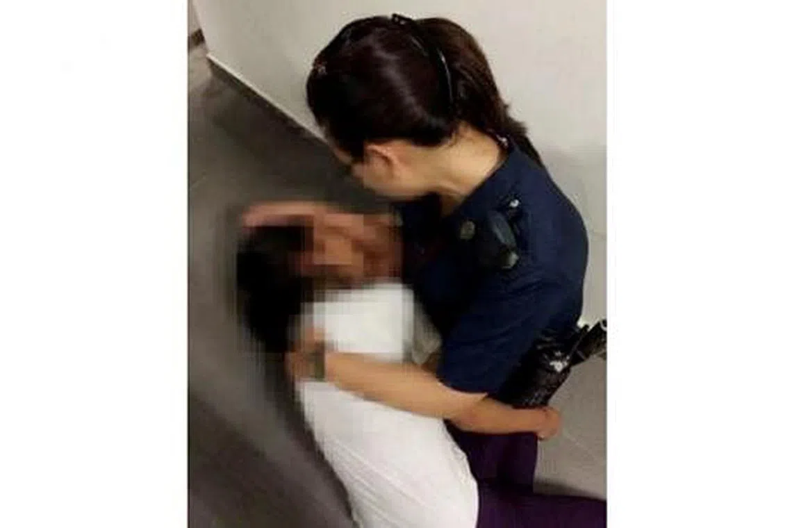 DAKAPAN PENUH KELEGAAN: Gambar ini, yang menunjukkan W/CPL Nur Fadhilah mendakap dan memujuk seorang remaja yang cuba bunuh diri, menerima lebih 3,000 'likes' dan dikongsi lebih 200 kali di Facebook. - Foto YISHUN NORTH NPC -