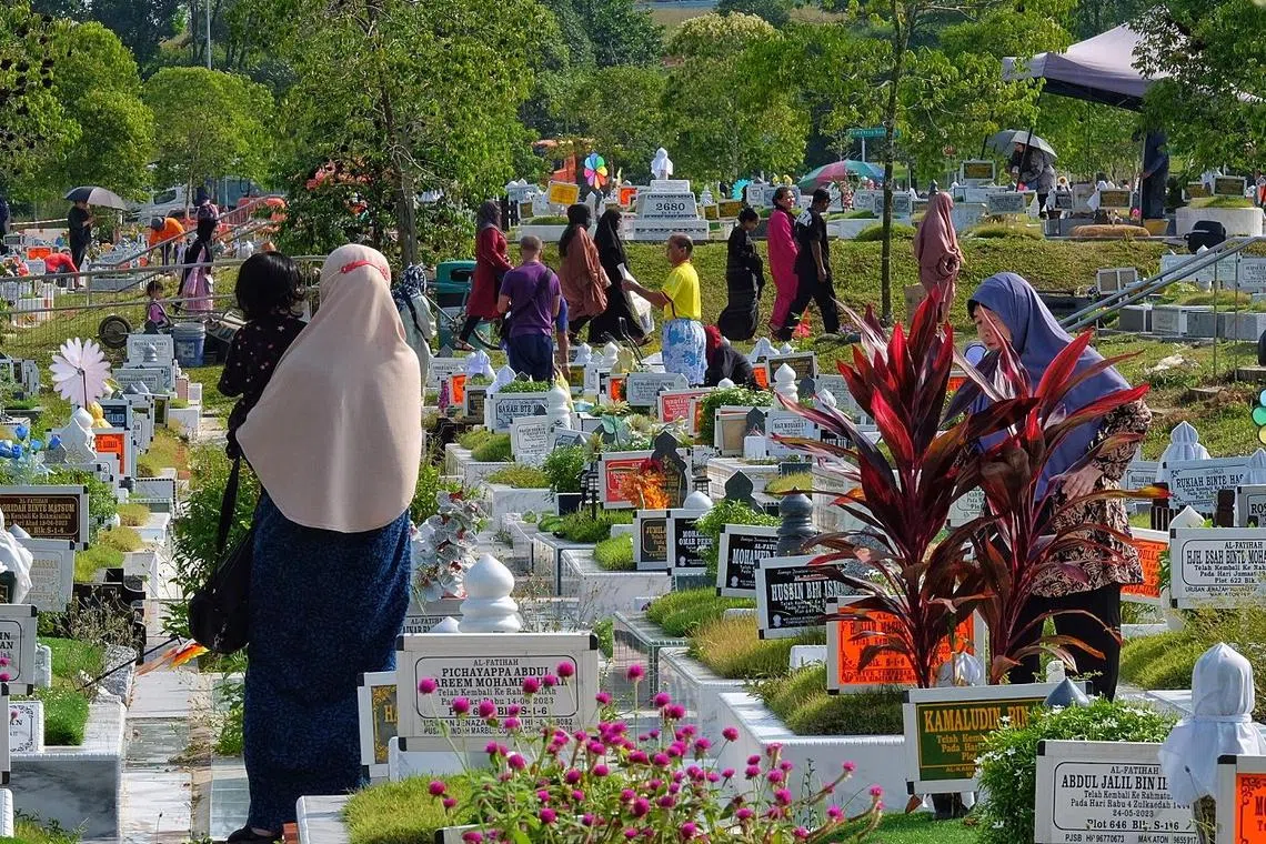 Lebih ramai pengunjung daripada biasa melawat Tanah Perkuburan Choa Chu Kang pada 6 April, iaitu hujung minggu terakhir sebelum Hari Raya Aidilfitri menjelang.
