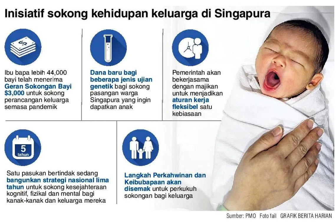 Kadar Kesuburan Keseluruhan (TFR) Singapura pula naik sedikit tahun lalu ke 1.12 berbanding paras paling rendah 1.10 pada 2020.