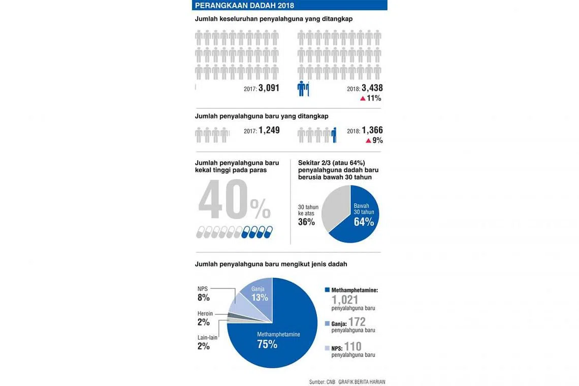 * 343 penyalahguna NPS ditangkap tahun lalu berbanding seorang pada 2017 * Methamphetamine pilihan pertama penyalahguna baru diikuti ganja dan NPS