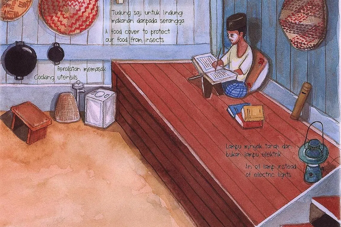 Buku itu penuh dengan kenangan silam yang seperti belajar di bawah sinaran lampu minyak tanah, bermain guli dan mainan buatan sendiri serta menjaja kuih-muih kampung.