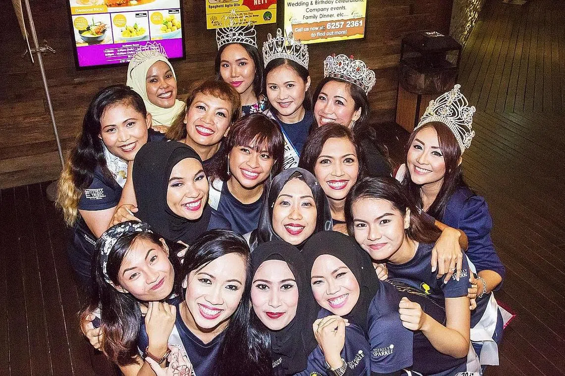 BUKAN HANYA UNTUK GLAMOR: Peserta Ratu Cantik Miss & Mrs Singapore Malays International turut menceriakan penghuni rumah tumpangan wanita Casa Raudha dalam acara 'hi-tea' Hari Ibu. - Foto ZALEHA ABDUL KADER -