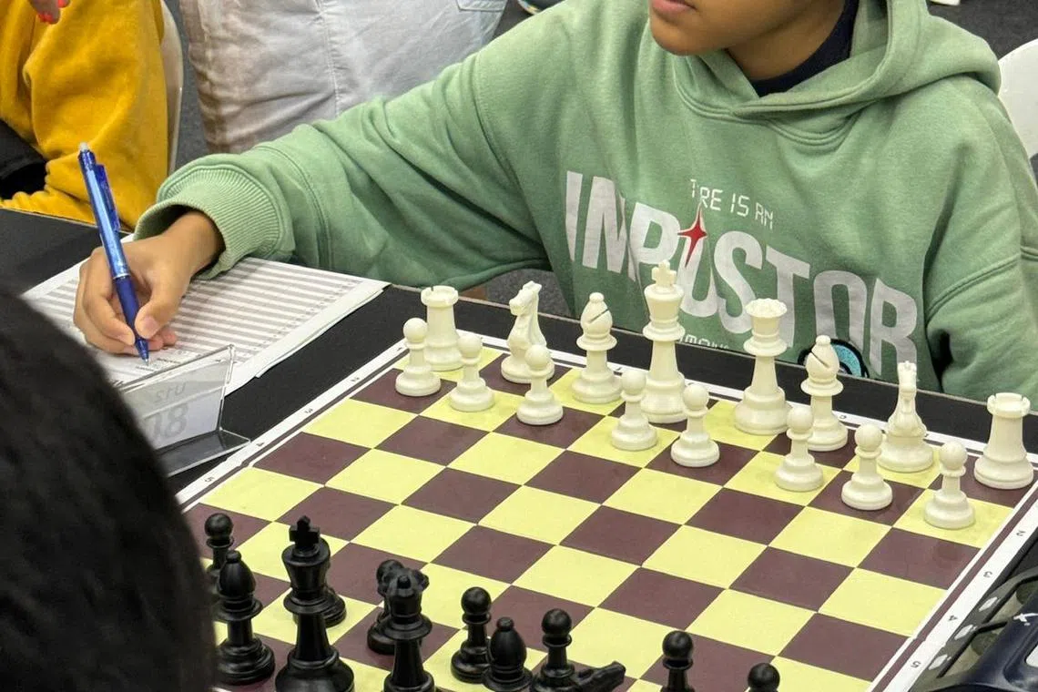 Bilal sedang persiapkan diri di Kejohanan Catur Kumpulan Umur Kebangsaan Ke-39 anjuran Persekutuan Catur Singapura dan Rangkaian Sukan Masyarakat Tampines West di Our Tampines Hub (OTH) 24 hingga 28 November. - Foto BH oleh RUBIAH MOHD