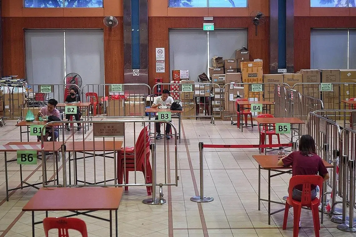 BEBERAPA orang dilihat makan tengah hari di Kelab Masyarakat Braddell Heights semalam.
