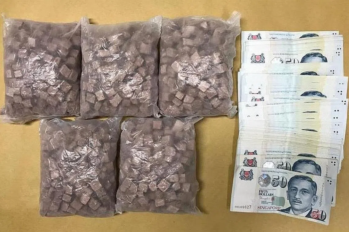 BARANGAN DIRAMPAS: Heroin dan wang tunai yang dirampas daripada seorang lelaki berusia 24 tahun di Yishun Avenue 4, dalam satu operasi oleh CNB pada 14 April. - Foto CNB -