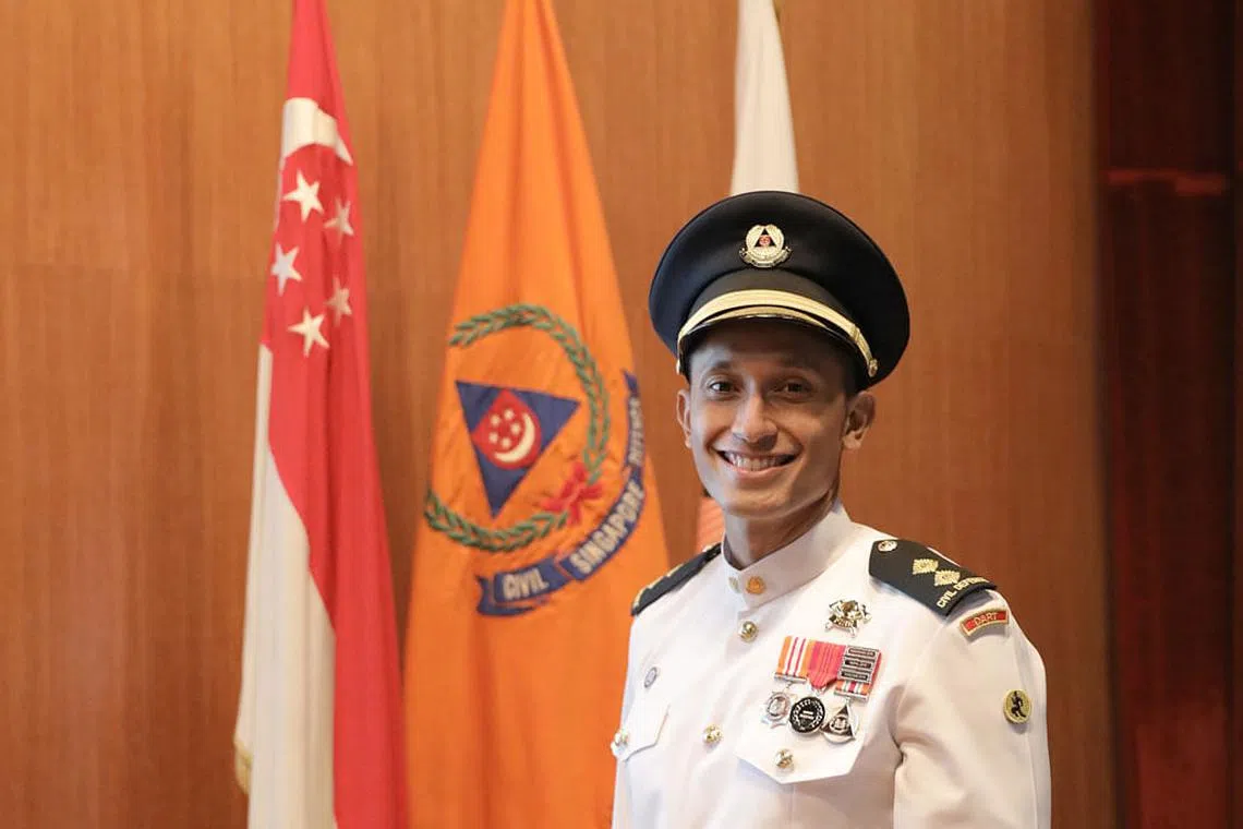 KADET TERBAIK: Leftenan Muhammad Bukhary Abu Bakar (atas) dinobat sebagai Kadet Terbaik kursus RCC ke-21 SCDF dalam upcara penutupan kursus tertutup di Akademi Pertahanan Awam bagi mencegah penularan Covid-19 - Foto SCDF -
