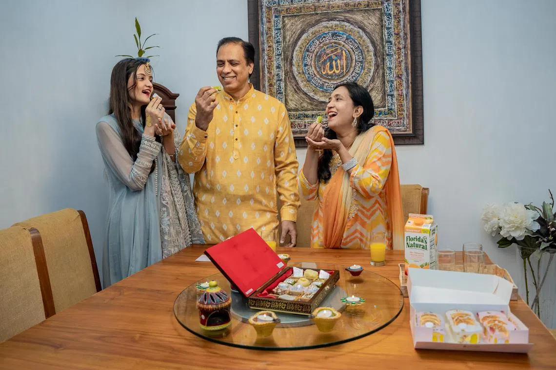 “Semasa tiba perayaan sebegini, rumah kami juga berkerlipan dengan cahaya warna-warni serta hiasan berkilauan, selain diselubungi aroma masakan tradisional selain meja yang dihiasi sajian manisan.