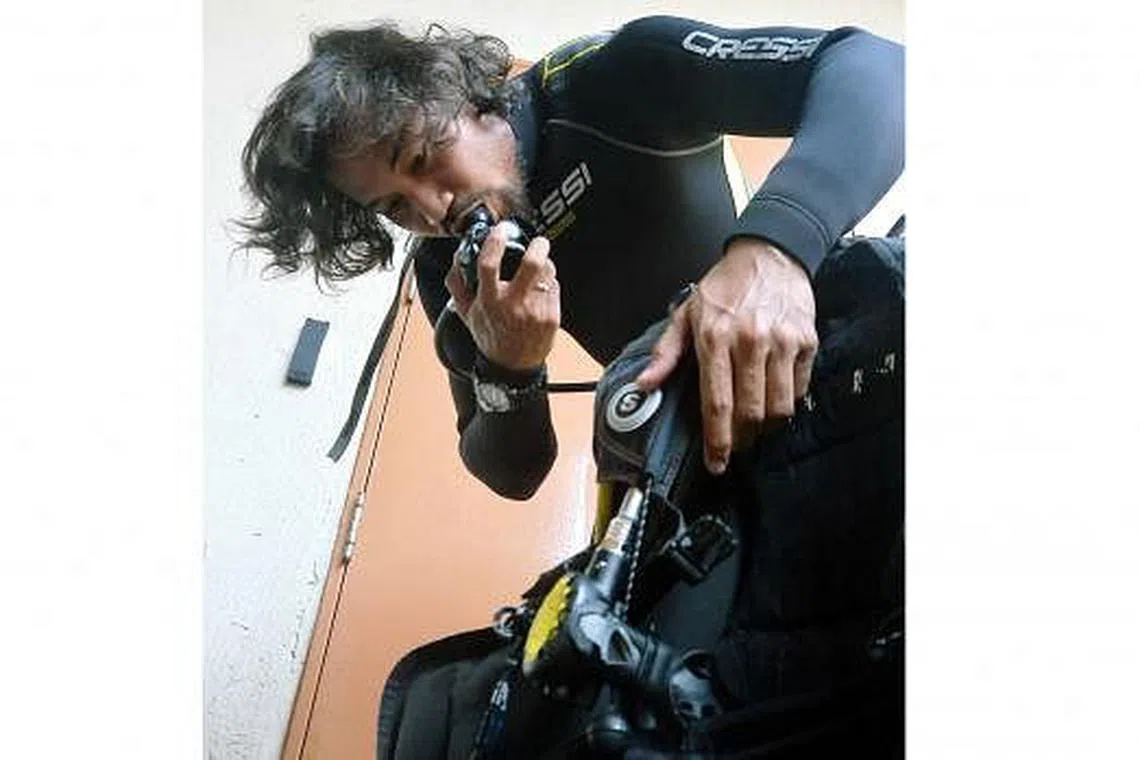 PERIKSA PERALATAN: Encik Salleh memeriksa tangki oksigen sebelum menyelam. -
