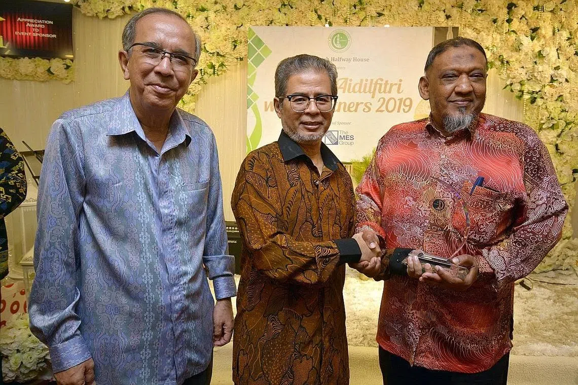 IKTIRAF SUMBANGAN: (Dari kiri) Naib Presiden III Jamiyah, Dr Isa Hassan dan Naib Presiden II Jamiyah, Encik Mohamed Yunos Mohamed Shariff bersama Pengurus Besar dan Pengarah Divisyen The MES Group, Encik Mohamed Rafiq, di acara menghargai syarikat yang menawarkan peluang pekerjaan kepada penghuni Darul Islah. - Foto JAMIYAH -