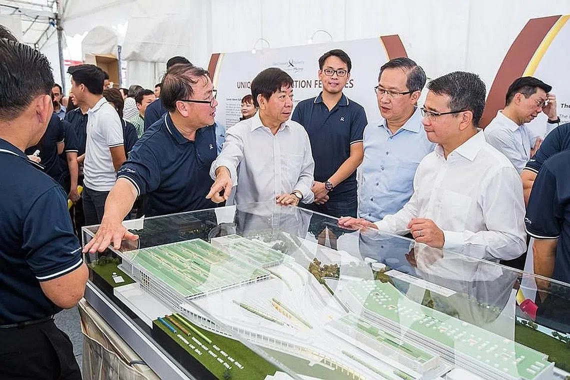 BANGUNAN 'KREATIF': Encik Khaw (empat dari kanan) berkata pasukan dari LTA berjaya membuat rekaan Depoh Bersepadu East Coast yang memenuhi keperluan prasarana dalam negara yang mempunyai tanah yang terhad. - Foto FACEBOOK/KHAW BOON WAN -