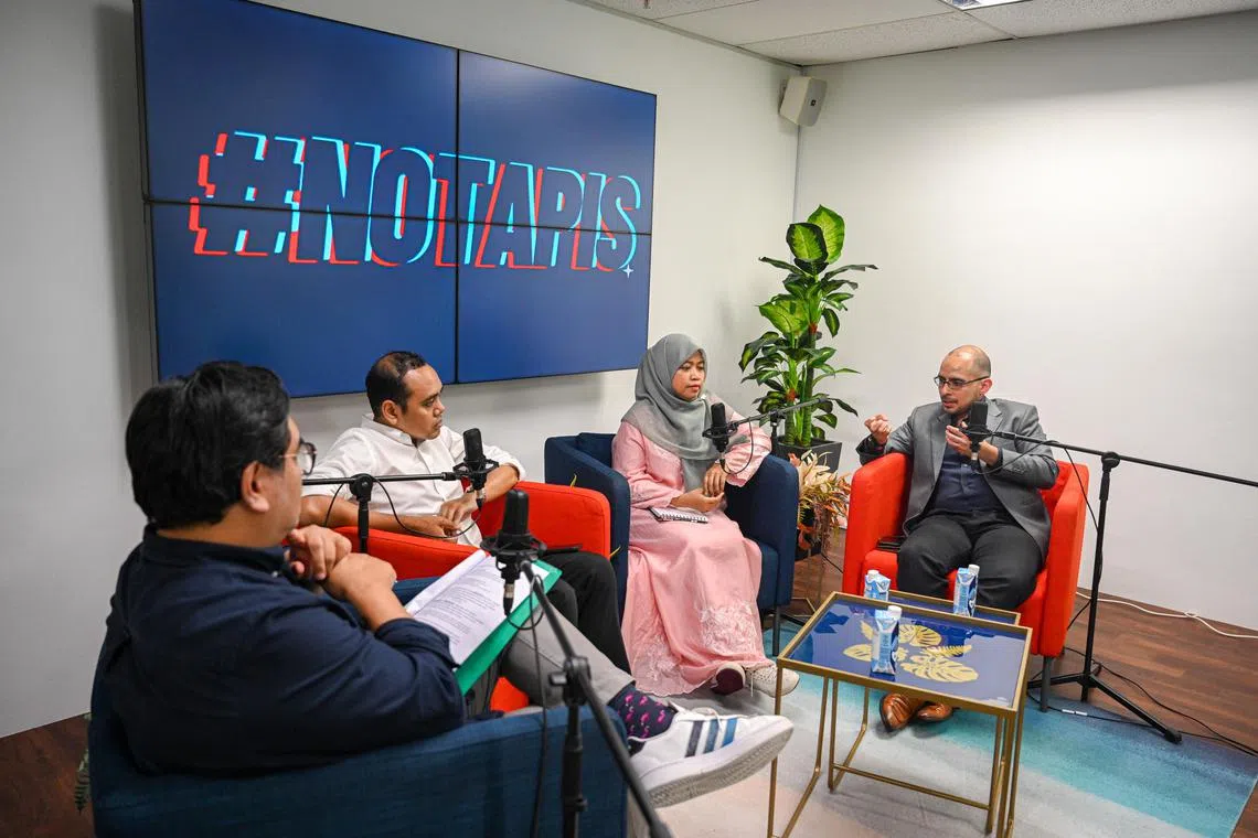 Ahli panel yang terdiri dari (dari kiri) moderator perbincangan, Editor Berita BH, Encik Nazri Hadi Saparin; AP GRC Chua Chu Kang, Encik Zhulkarnain Abdul Rahim; Ketua Pusat Harmoni, Ustazah Liyana Rosli Asmara dan Anggota Parlimen Dilantik (NMP), Dr Syed Harun Taha Alhabsyi, membincangkan tentang perlunya tingkatkan kesedaran tentang konflik Israel-Palestine menerusi perbincangan dan dialog antara agama. - Foto BH oleh SHAFIQ APANDI