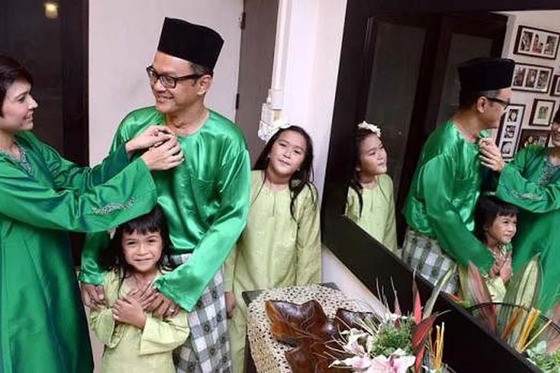 REZEKI BARU DI AIDILFITRI: Sambil sibuk membuat persiapan bagi Hari Raya, Encik Ridzal, yang bersama isteri, Cik Norliza Hussin, dan dua anak mereka, Nadia Farhana (kanan) dan Nurul Iman, tidak sabar mahu kembali menyumbang kepada sukan ragbi melalui tugasnya sebagai pengurus khidmat ragbi bagi Asia bersama Lembaga Ragbi Antarabangsa (IRB). - Foto TAUFIK A. KADER -