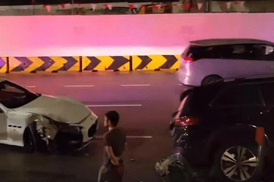 Dalam satu video yang memberi gambaran sesudah kemalangan itu, diterbit di laman SG Road Vigilante, kereta Mercedes berwarna gelap itu kelihatan hampir terbalik selepas ternaik bebendul jalan raya di luar Great World.