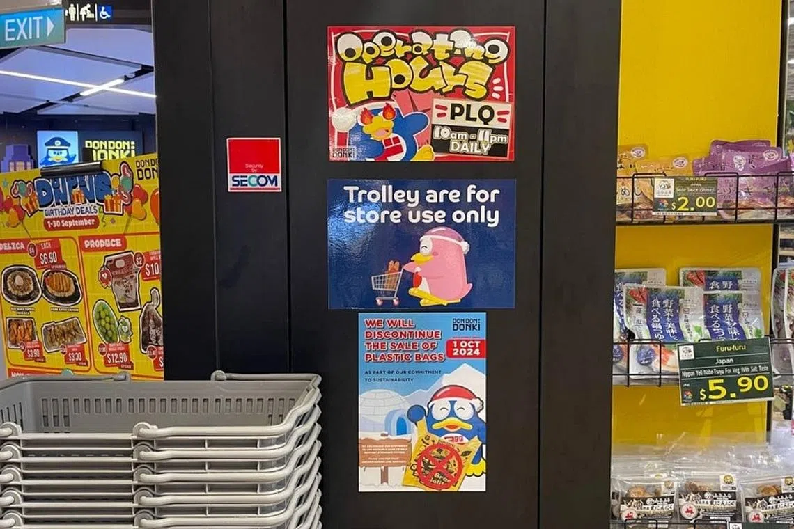 Kedai runcit dari Jepun, Don Don Donki, akan menghentikan penjualan beg plastik di 16 cawangannya di Singapura mulai 1 Oktober.
