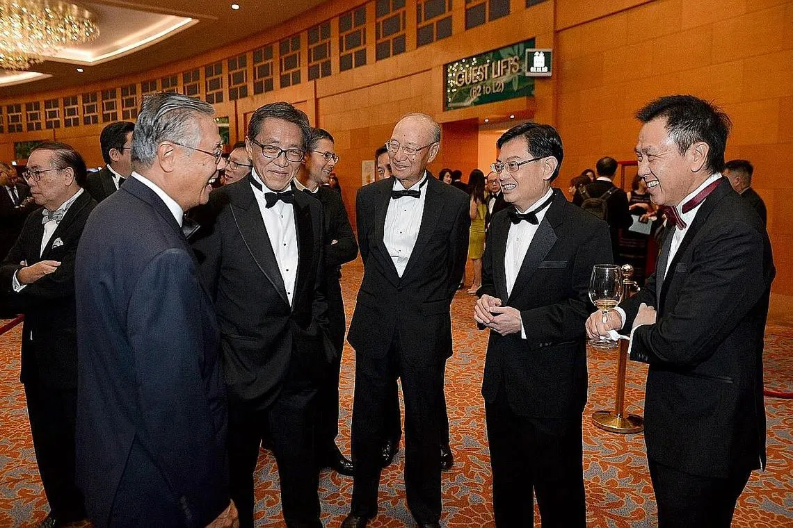 JALIN KERJASAMA: Encik Heng (kanan) beramah mesra dengan pemimpin peniaga. Beliau berkata pemerintah akan terus bekerjasama dengan syarikat-syarikat untuk menggalak peraturan dan dasar properniagaan yang berpandangan ke hadapan. - Foto BH oleh SHINTARO TAY -