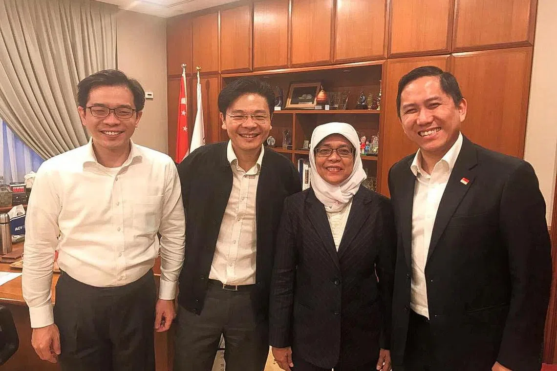 Timbalan Perdana Menteri merangkap Menteri Kewangan Singapura, Encik Lawrence Wong, memberi penghargaan kepada mantan Presiden Puan Halimah Yacob sehari selepas majlis perpisahan beliau pada Rabu di Istana
