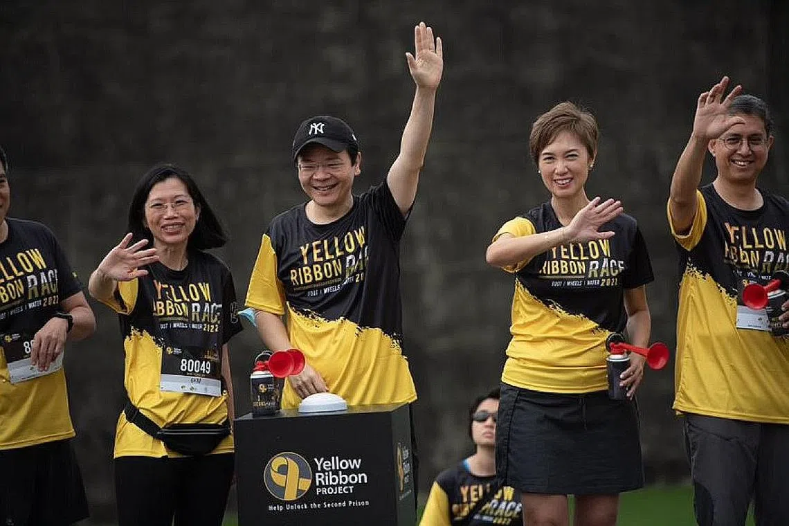 Timbalan Perdana Menteri merangkap Menteri Kewangan, Encik Lawrence Wong, yang turut menyertai larian itu, mengibarkan bendera bagi acara larian sepanjang 6 kilometer dan 10 kilometer.