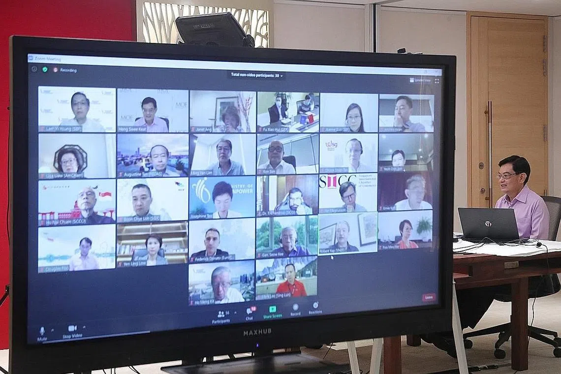 BERI KEYAKINAN: Timbalan Perdana Menteri, Encik Heng Swee Keat, bertemu pemimpin perniagaan dan ketua kesatuan dalam satu sesi dialog alam maya kelmarin. - Foto MCI -
