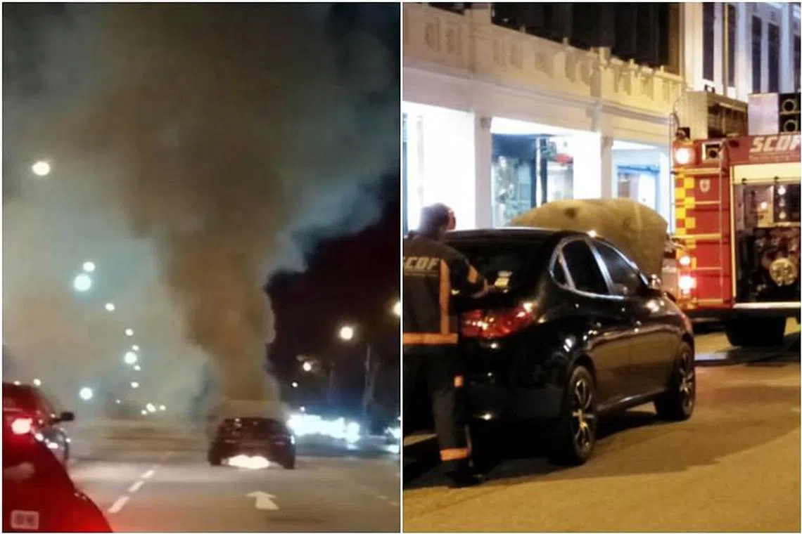 Dalam insiden pertama, sebuah kereta di Bugis terbakar di Tan Quee Lan Street sekitar 7 malam. Pasukan Pertahanan Awam Singapura (SCDF) berkata ia dimaklumkan mengenai kes tersebut pada 7.30 malam dan mengerahkan dua kereta bomba dan dua motosikal bomba ke tempat kejadian.