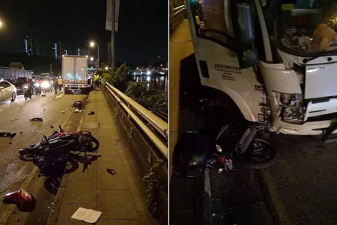 NAHAS JALAN RAYA: Seorang lelaki berusia 21 tahun dan seorang lagi yang berusia 42 tahun terkorban dalam kemalangan di Koswe Woodlands awal pagi semalam. - Foto FACEBOOK JHONSON GRACE SINNAPAN -