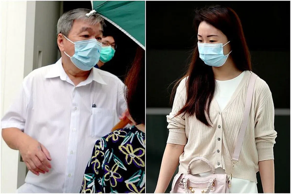 KE MUKA PENGADILAN: Dua warga Singapura, Ong Ah Huat (kiri), 60 tahun, adalah mantan ketua pegawai kewangan Coastal Oil Singapore, dan Huang Peishi, 33 tahun, pernah menjadi pengurus perbendaharaan di firma itu.