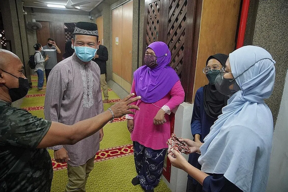 Anggota Parlimen GRC Marine Parade Encik Fahmi Aliman (gambar dua dari kiri) kelihatan melahirkan penghargaan kepada relawan yang telah tampil untuk membantu membersihkan Masjid Darul Aman.