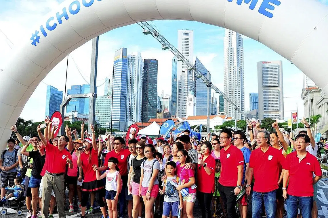 KUKUHKAN KELUARGA: Dr Faishal (kiri) mengambil selfie bersama anggota Majlis Keluarga Sepanjang Hayat dan peserta acara berjalan keluarga di Sambutan Keluarga Sepanjang Hayat 2017 semalam. - Foto FAMILIES FOR LIFE -