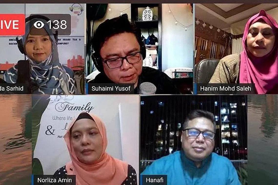 FACEBOOK LIVE: Sesi Facebook Live menampilkan (dari atas kiri ikut putaran jam) Cik Shahida Sarhid, Encik Suhaimi Yusof, Cik Hanim Mohd Salleh, Encik Hanafi Asmore dan Cik Norlizah Amin. - Foto tangkap layar FACEBOOK BH -