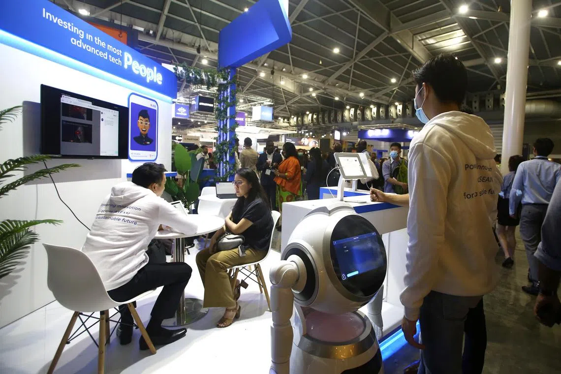 INOVASI TEKNOLOGI: Pengunjung yang hadir di Pesta Fintech Singapura tahun lalu yang tertumpu pada penyelesaian kewangan canggih dan inovasi teknologi terkini. - Foto fail
