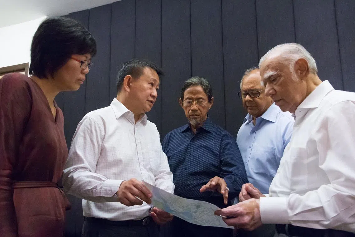 SARAN KAWASAN TAPAK MEMORIAL PENGASAS: (Dari kiri) Cik Lee Huay Leng, Encik Lee Tzu Yang, Encik Sidek Saniff, Encik Timothy James De Souza dan Encik Gopinath Pillai adalah antara 15 ahli jawatankuasa yang ditugaskan mengemukakan konsep sebuah memorial bagi memperingati generasi pemimpin pengasas Singapura - Foto MCCY -