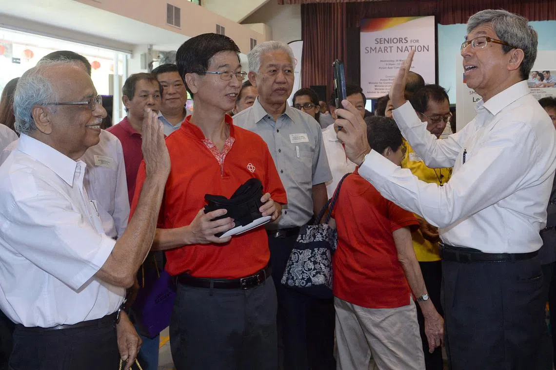 MENGGALAK golongan warga emas melengkapkan diri dengan kemahiran teknologi maklumat dan infokom sejajar dengan visi Singapura ke arah Negara Bijak.
