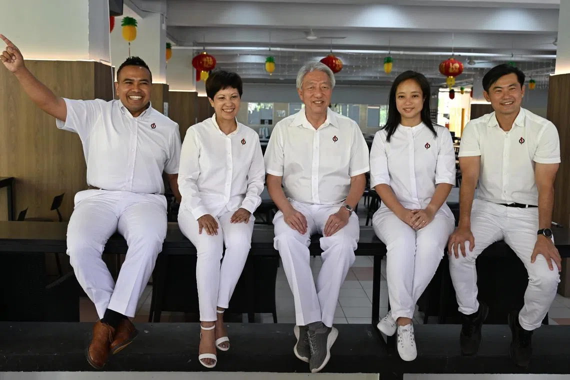 Encik Teo, Encik Tan, dan Encik Sharael sebahagian daripada pasukan lima anggota PAP yang bertanding di GRC Pasir Ris-Punggol pada GE2020.