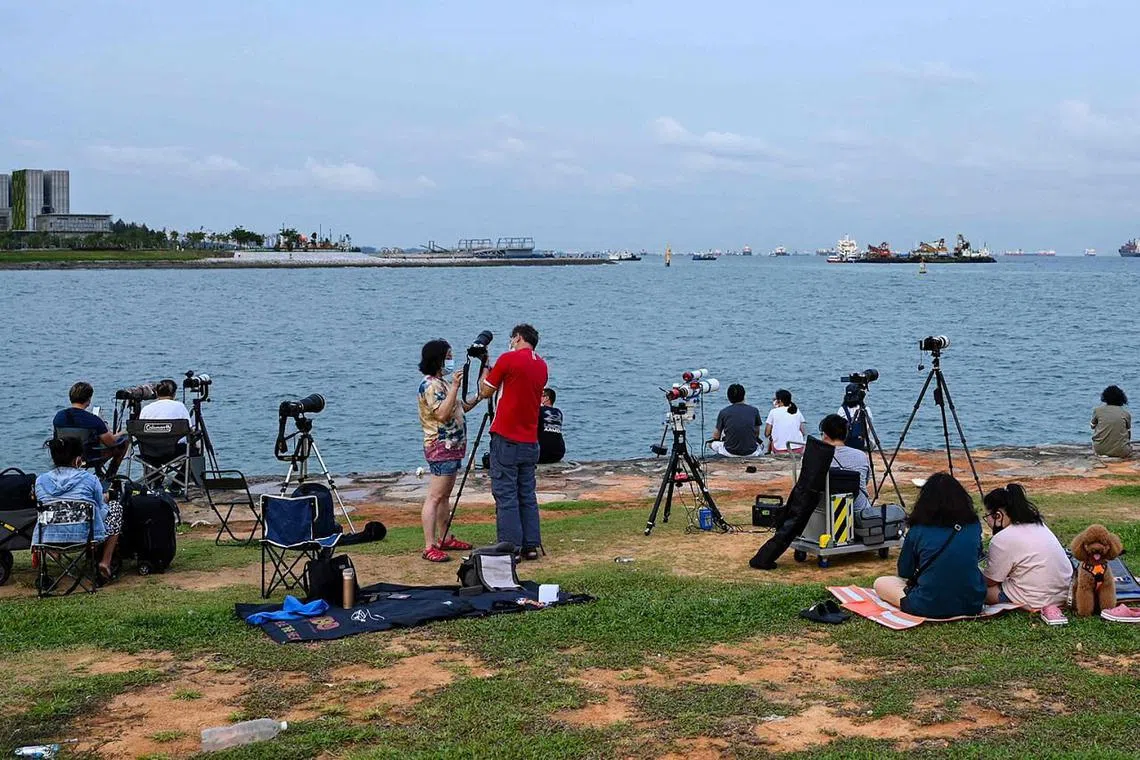 Meskipun tidak dapat dilihat dengan jelas di Singapura disebabkan cuaca yang kurang baik, beberapa pencinta bintang di Singapura tetap cuba menyaksikan fenomena itu dari beberapa kawasan di Singapura termasuk di pantai East Coast.