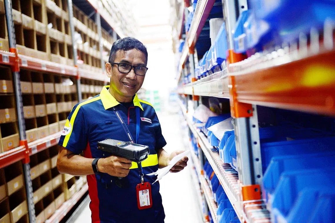 BERMULA DARI BAWAH: Encik As'at tidak pernah melepaskan peluang mempelajari kemahiran baru kerana tahu banyak manfaat yang boleh diraih. Bermula sebagai penjaga stor, beliau kini memegang jawatan sebagai penyelia operasi kanan di Schenker Singapore Pte Ltd sejak 1999. - Foto BH oleh KHALID BABA