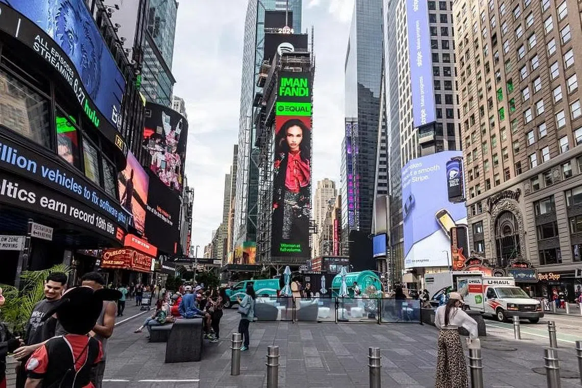 Wajah penyanyi dan model Singapura, Iman Fandi, terpampang megah pada papan iklan di Times Square, Bandar New York (NYC) pada 19 Jun.