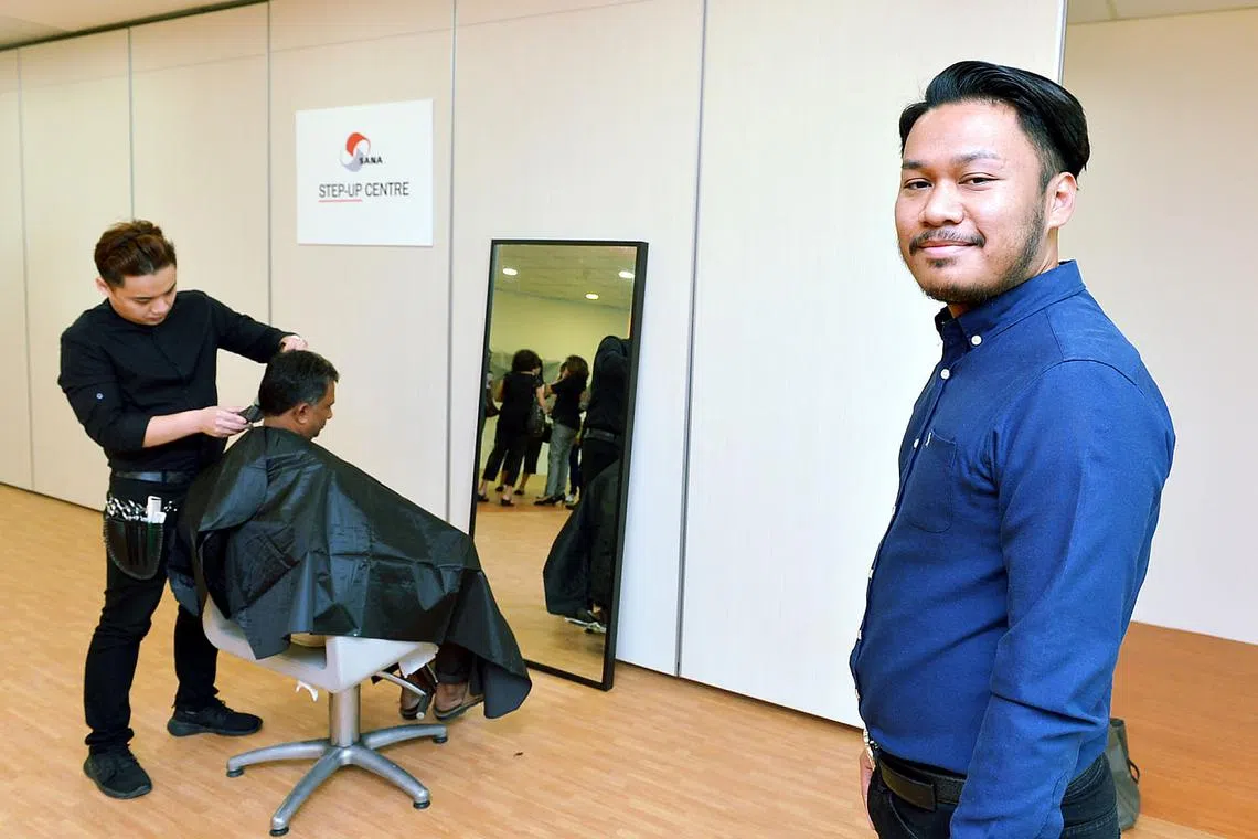 "Kami menyediakan latihan dalam bentuk teori dan amali selama tiga bulan. Selain melengkapi mereka dengan kemahiran memotong rambut, saya bantu memupuk disiplin dan kesungguhan mahu bertugas dalam bidang ini," kata Encik Izwan, yang berpengalaman 13 tahun dalam bidang itu.