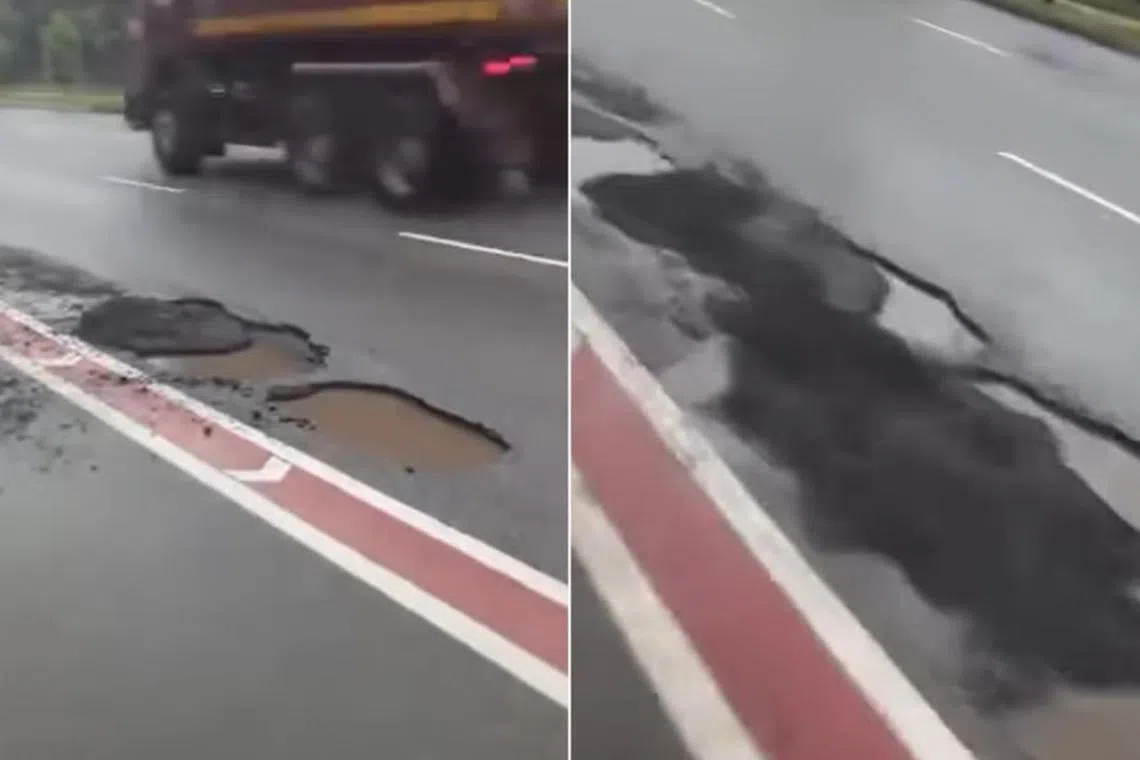 Dalam video sepanjang empat minit yang dikongsi di Facebook, lebih 20 lubang jalan boleh dilihat di tiga laluan di Tanah Merah Coast Road, lapor The Straits Times (ST).