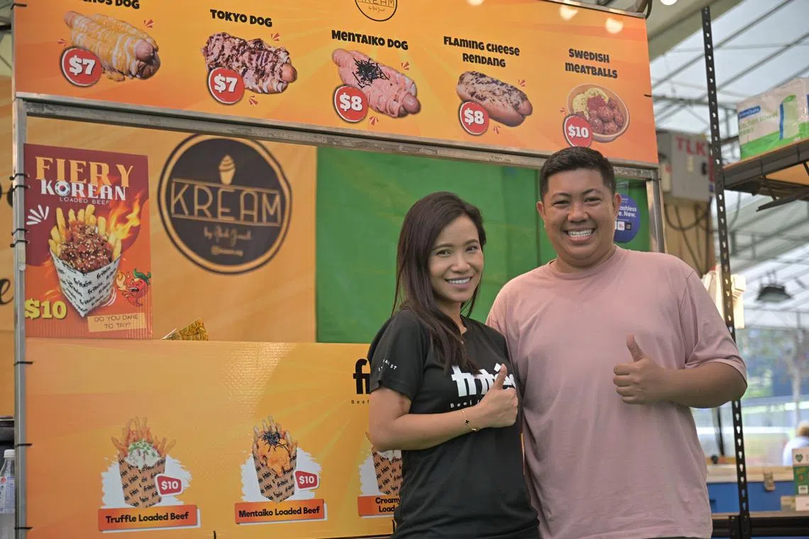 Bagi yang sudah biasa dengan menu makanan di bazar, mereka mungkin tahu tentang gerai Kream.SG yang menjual aneka roti hot dog kendalian pasangan suami isteri, Encik Aliff Zainal dan Cik Ikah Jamil.