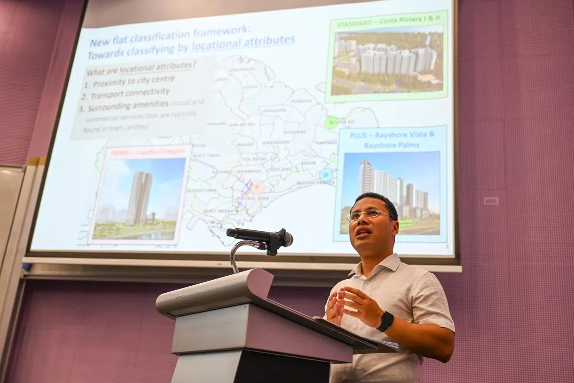 Klasifikasi flat HDB di bawah kategori Standard, Plus dan Prime adalah berdasarkan jaraknya dengan pusat bandar, perhubungan pengangkutan, dan ketersediaan kemudahan seperti perkhidmatan sosial dan komersial, kata Menteri Pembangunan Negara, Encik Desmond Lee.