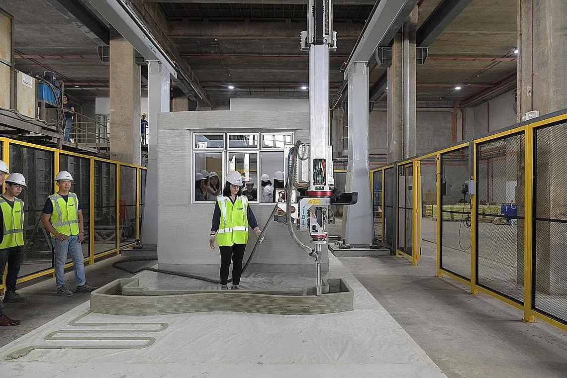 BUAT julung kalinya, Lembaga Pembangunan Perumahan (HDB) akan memperkenalkan pencetak konkrit 3D, yang bertujuan memperluaskan keupayaan reka bentuk dan menggalak lebih banyak binaan mampan, di sini.