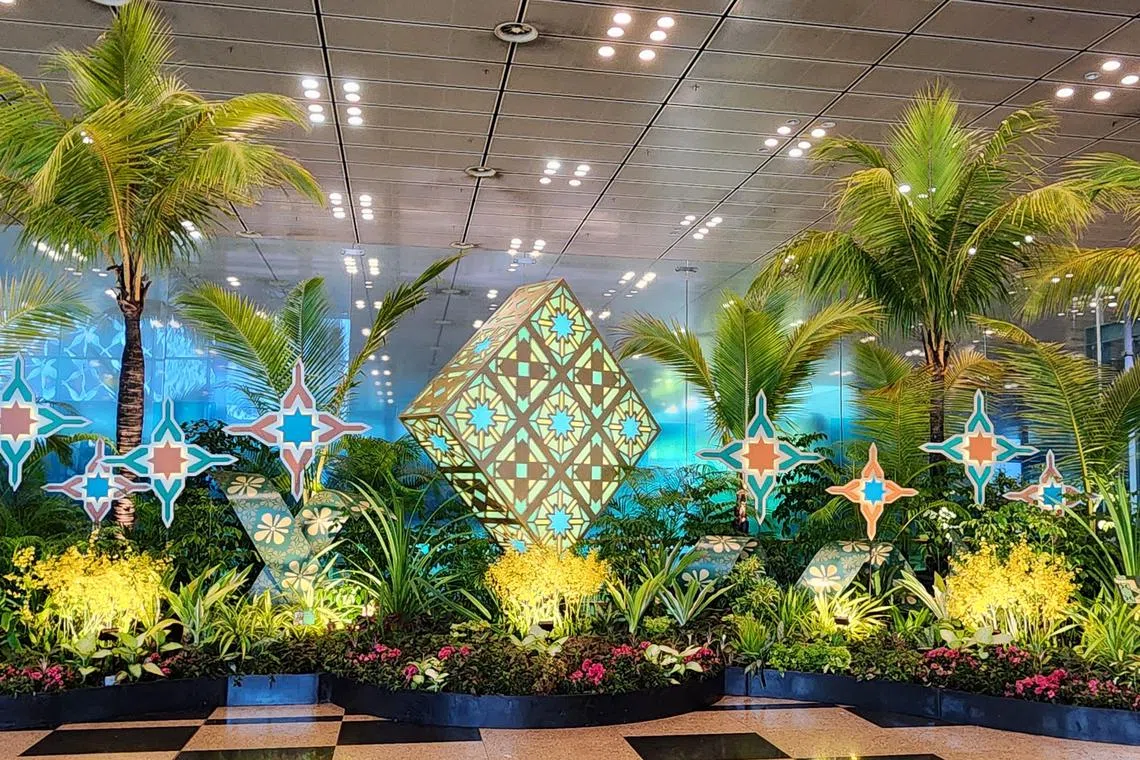 Dari sekarang hingga 10 Mei, pelancong dan mereka yang mengunjungi Lapangan Terbang Changi boleh mencuci mata dengan hiasan Hari Raya yang menawan merentasi Terminal 1, 2, 3 dan 4 di kedua-dua kawasan awam dan transit.