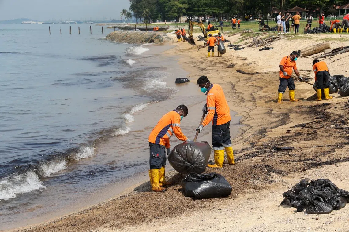 Limpahan minyak itu telah mengalir dan mengotorkan garis pantai di Taman East Coast, Hutan Simpanan Labrador, Keppel Bay, Kepulauan Selatan dan Sentosa.