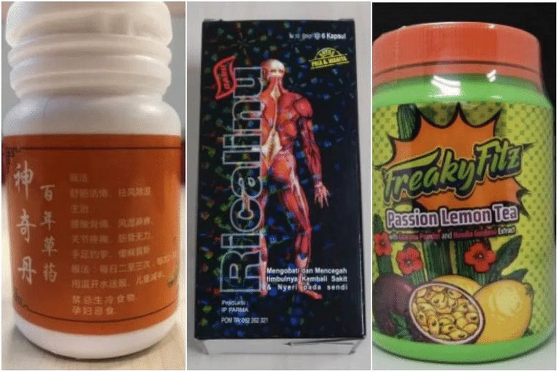 Dalam kenyataan Isnin (9 Mac), agensi itu berkata bahawa minuman mengurangkan berat badan Freaky Fitz dan ubat melegakan kesakitan Shen qi dan bai nian cao yao dan Ricalinu, yang boleh menyebabkan risiko kesihatan yang serius kerana mengandungi bahan yang boleh memudaratkan.