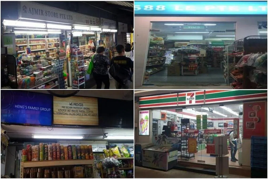 Kedai yang digantung lesen tembakau itu adalah Ajmir Store di 70 Woodlands Avenue 7; 1558 Le di 158B Rivervale Crescent; 7-Eleven di 68 Geylang Bahru; dan NH Mart di 620 Hougang Avenue 8.