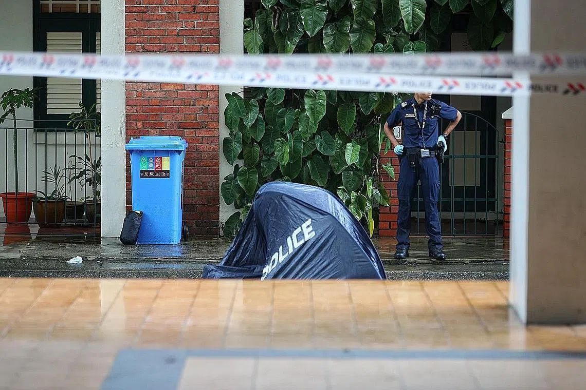 Lelaki tersebut ditemui tidak bergerak sekitar 6.45 pagi di kolong Blok 637, Veerasamy Road, manakala ibunya ditemui terbujur kaku dalam unit kediaman mereka di tingkat 11.