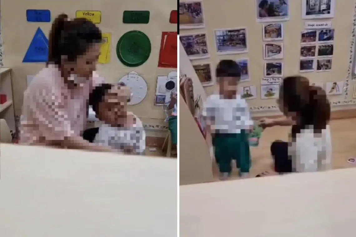 Sesetengah ibu bapa telah mengeluarkan anak-anak mereka dari prasekolah Kinderland @ Woodlands Mart selepas video-video seorang guru yang didakwa salah urus murid menjadi tular dalam talian pada Isnin.